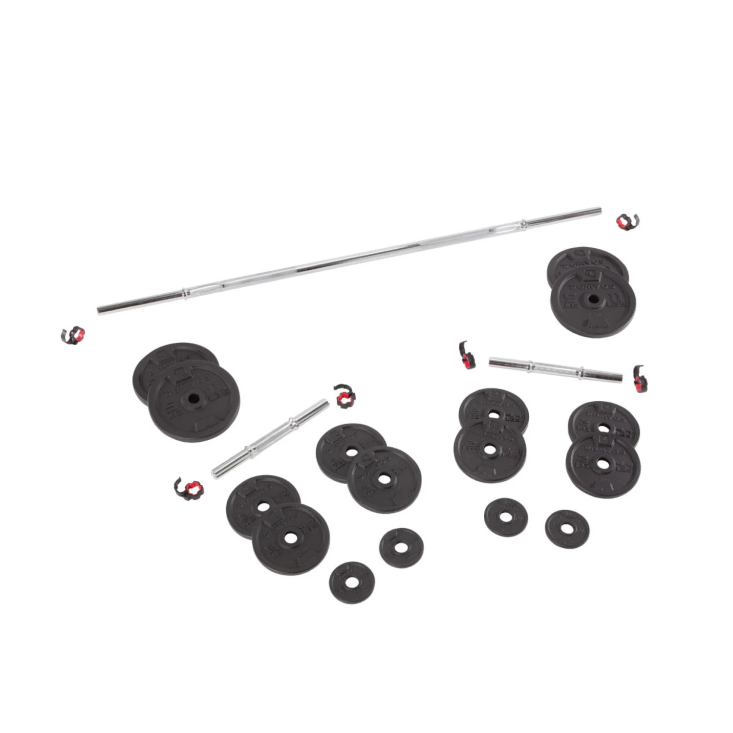 This sturdy and durable 50 kg (110 lb) dumbbell set is a must for building strength. It is made to last and will see you through all your home workouts. Swap out the weights on the bar or dumbbells in a flash! Adjust the weight to your goals. You can do a wide range of exercises with this versatile set.