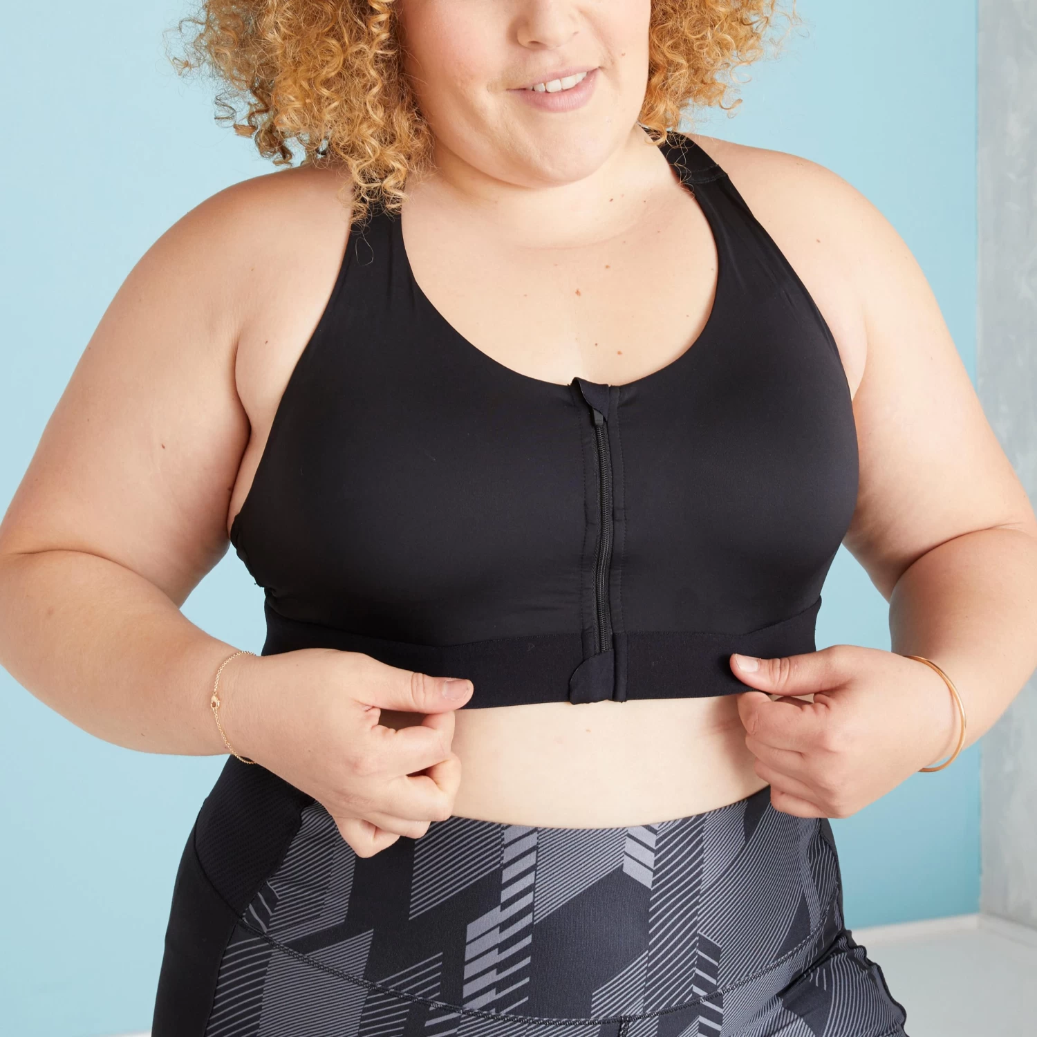 This sports bra is designed for high-impact training activities such as HIIT, cardio circuits, jumping, and bodyattack. It is available in sizes XS to 5XL. We opted for a front zipper to make this sports bra easy to put on. With adjustable straps and built-in foam padding, it’s comfortable and suitable for larger cup sizes (XS to 5XL).