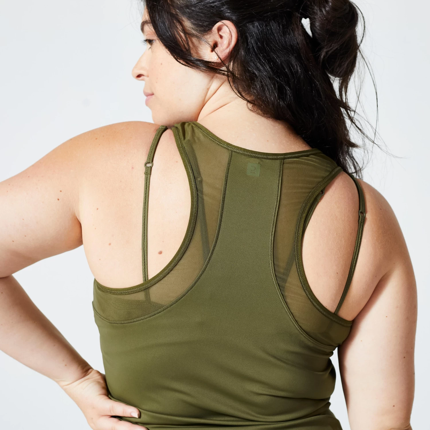 An ultra-feminine, comfortable tank top for both moderate and high-intensity training. Designed in a soft, light, stretchy fabric, this feminine tank top has an easy-to-wear cut: a racerback that frees up your shoulder blades to give you freedom of movement.